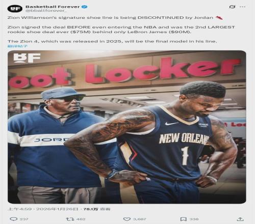 北京时间1月26日,据球鞋媒体Sole Retriever的爆料,Jordan Brand不会为鹈鹕球星锡安-威廉森推出第5代签名鞋,他现在所穿的Zion4成为锡安签名鞋的绝唱。锡安和Jordan Brand的合同7年7500万美元,将在今年7月份到期。